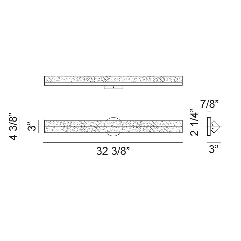 - Size 32 3/8"W x 4 3/8"H x 3"E