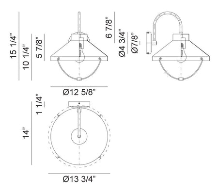 - Size Ø13 3/4" x 15 1/4"H x 14"E