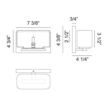 - Size 7 3/8"W x 4 3/4"H x 4 1/4"E