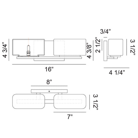 - Size 16"W x 4 3/4"H x 4 1/4"E