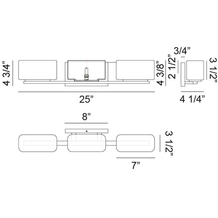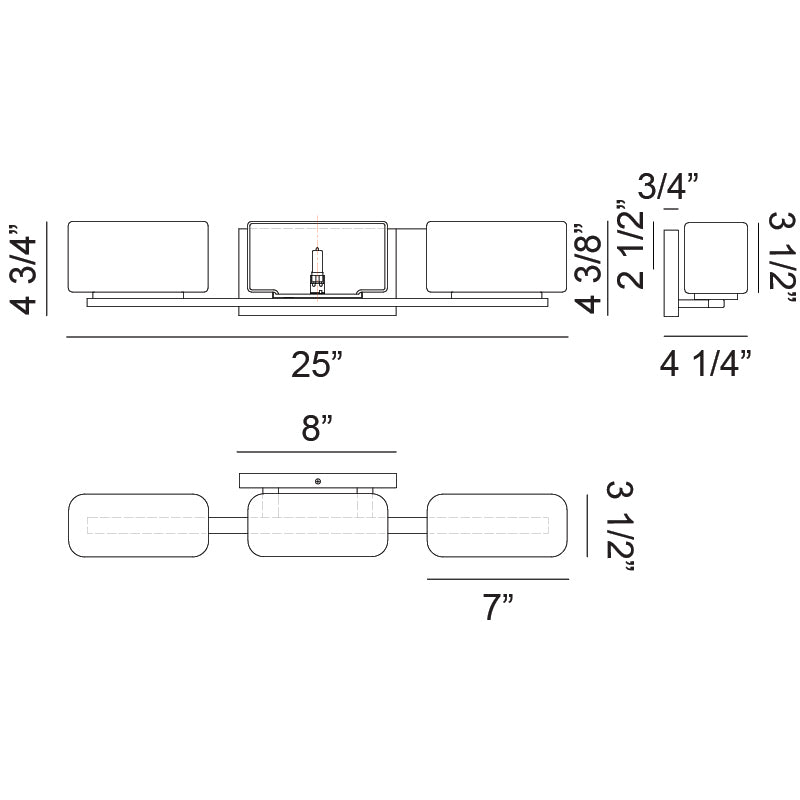 - Size 25"W x 4 3/4"H x 4 1/4"E