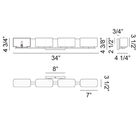 - Size 34"W x 4 3/4"H x 4 1/4"E