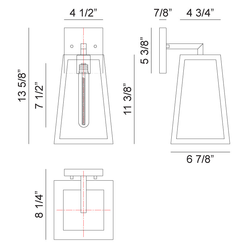 - Size 6 7/8"W x 13 5/8"H x 8 1/4"E