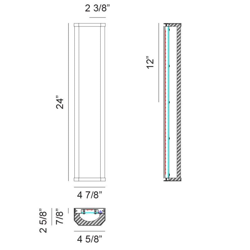 - Size 4 7/8"W x 24"H x 2 5/8"E