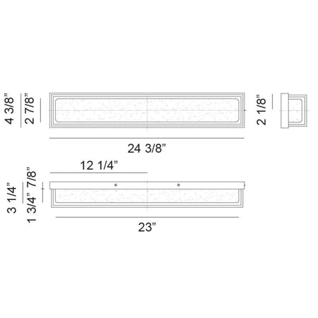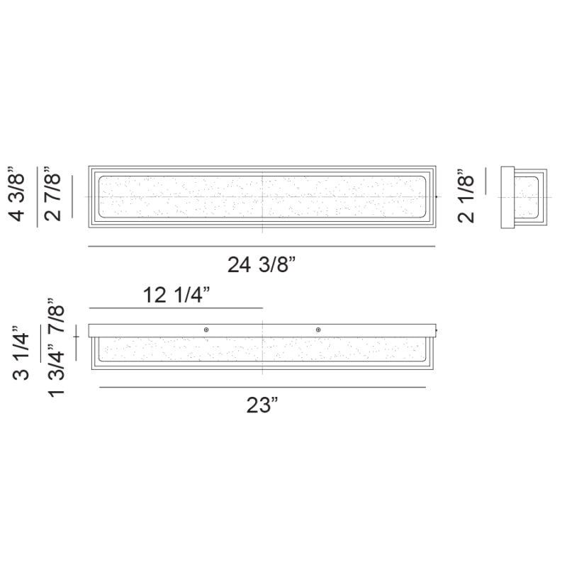 - Size 24 3/8"W x 4 3/8"H x 3 1/4"E