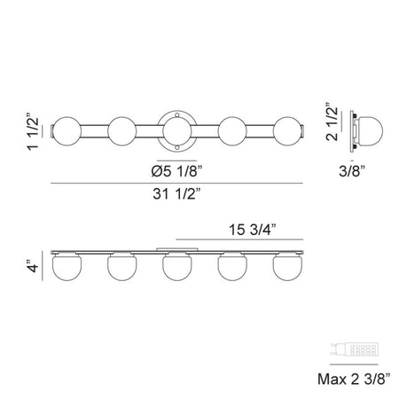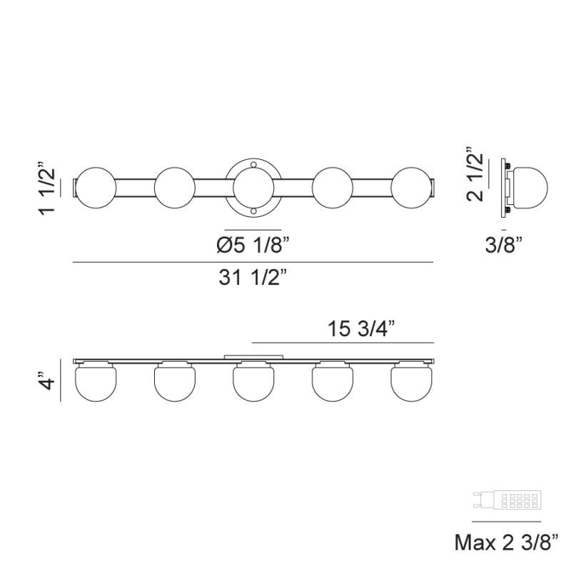 - Size 31 1/2"W x 5 1/8"H x 4"E