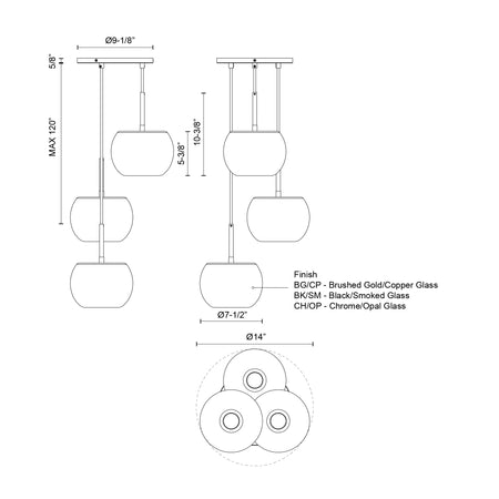 Samar 14-in Brushed Gold/Copper 3 Lights Chandeliers