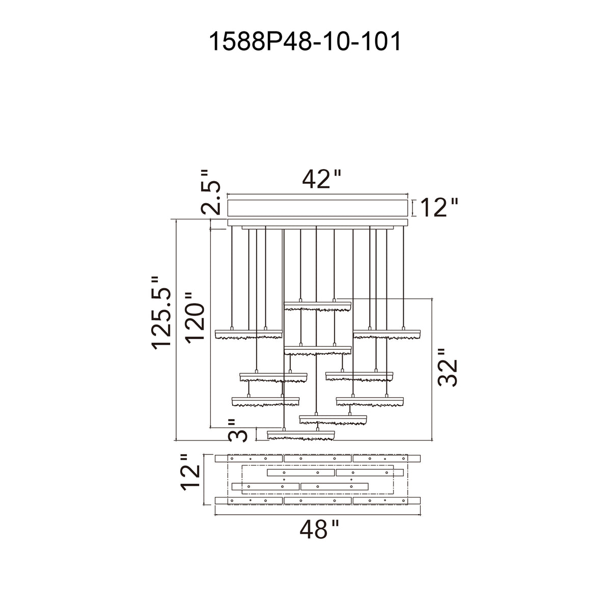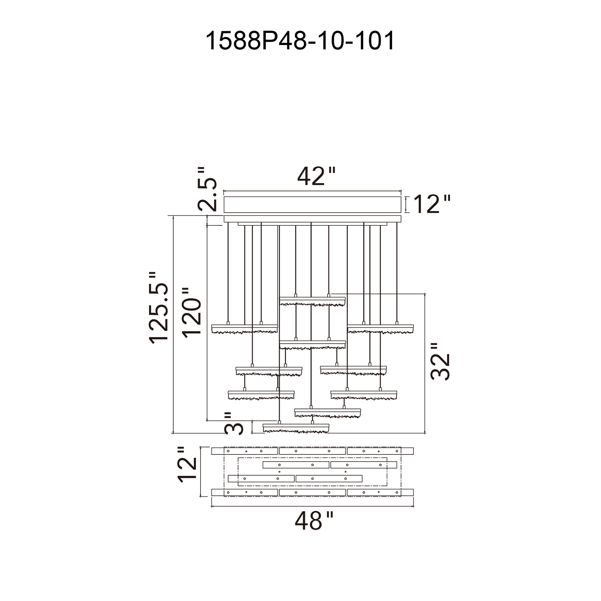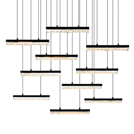 Stagger Integrated LED 48in Black Chandelier with Handcrafted Glass
