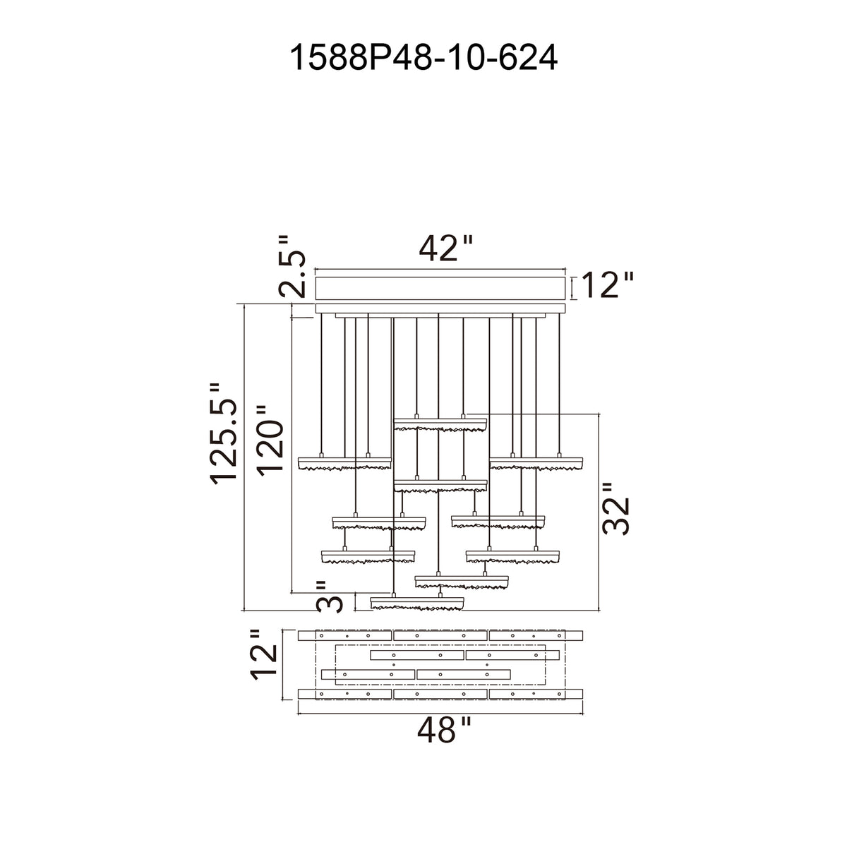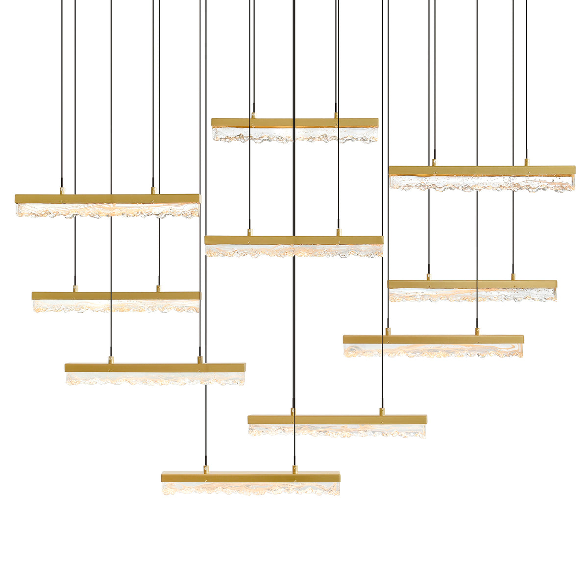 Stagger Integrated LED 48in Brass Chandelier with Handcrafted Glass