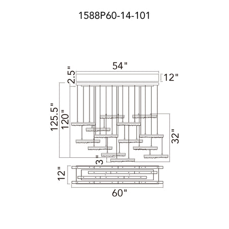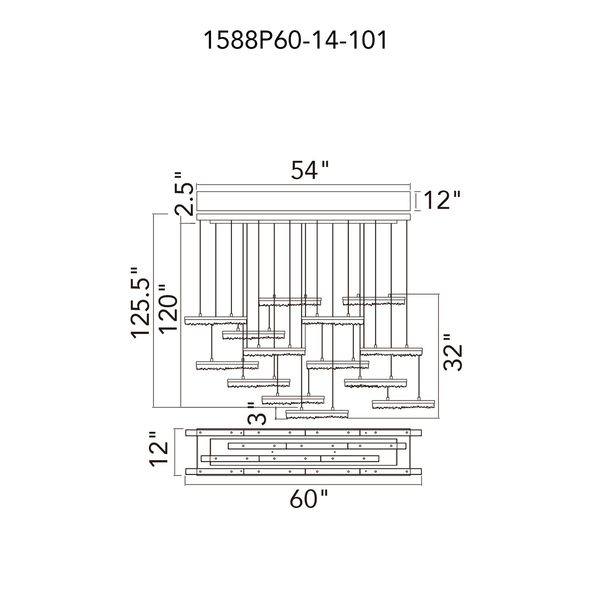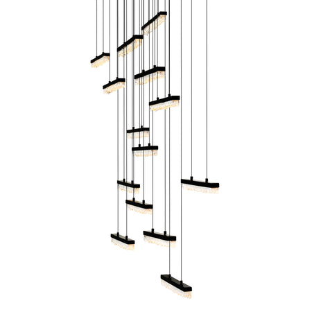 Stagger Integrated LED 60in Black Chandelier with Handcrafted Glass