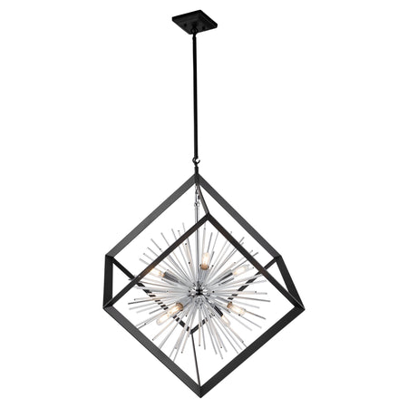 Sunburst 8 Light Chandelier (Matte Black & Chrome)