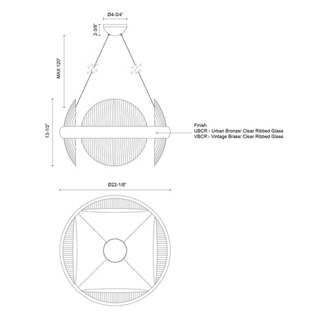 Taurus 22-in Vintage Brass/Clear Ribbed Glass LED Chandelier