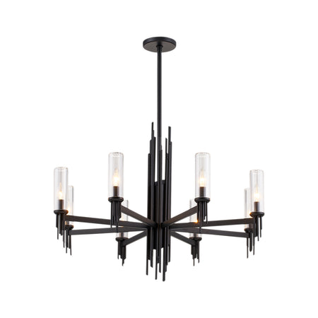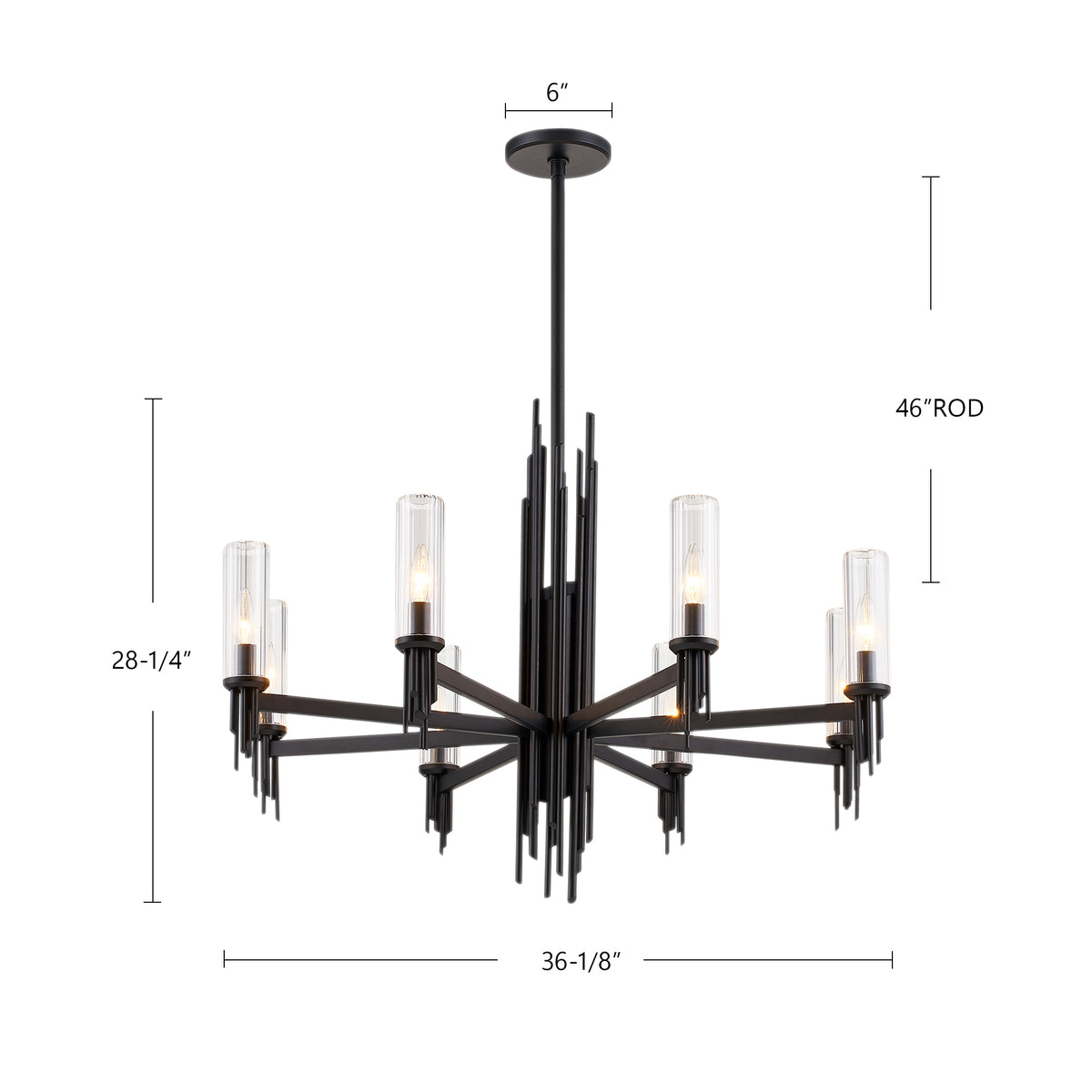 Torres 36-in Clear Ribbed Glass/Matte Black 8 Lights Chandeliers