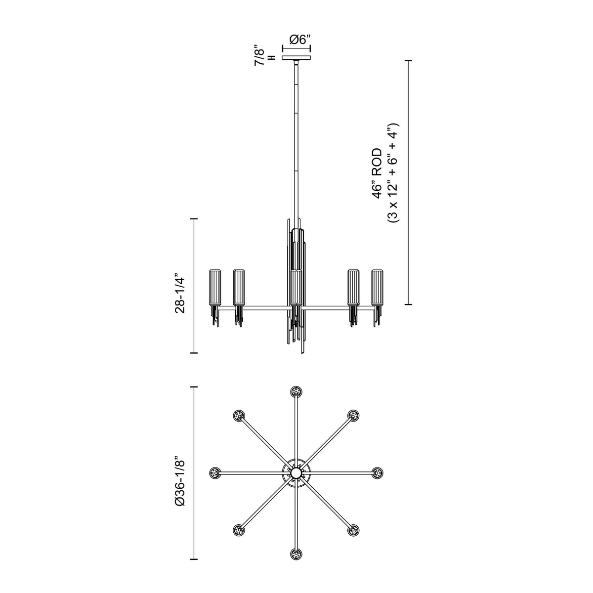 Torres 36-in Ribbed Glass/Vintage Brass 8 Lights Chandeliers