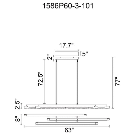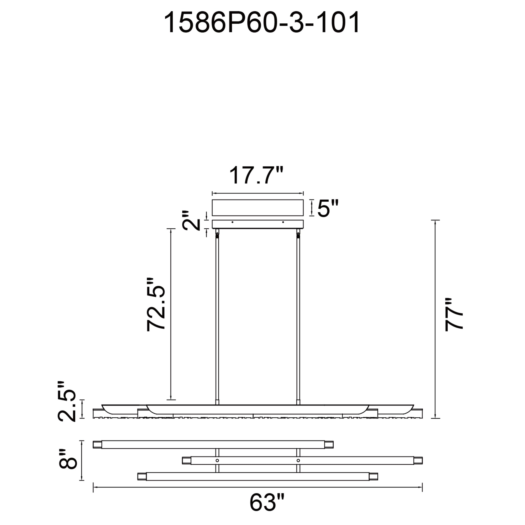 Valira Integrated LED 60in Black Chandelier with Handcrafted Glass
