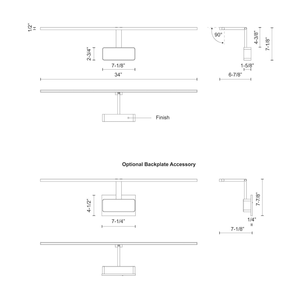 - Size W34" x H8-3/8" x E9"