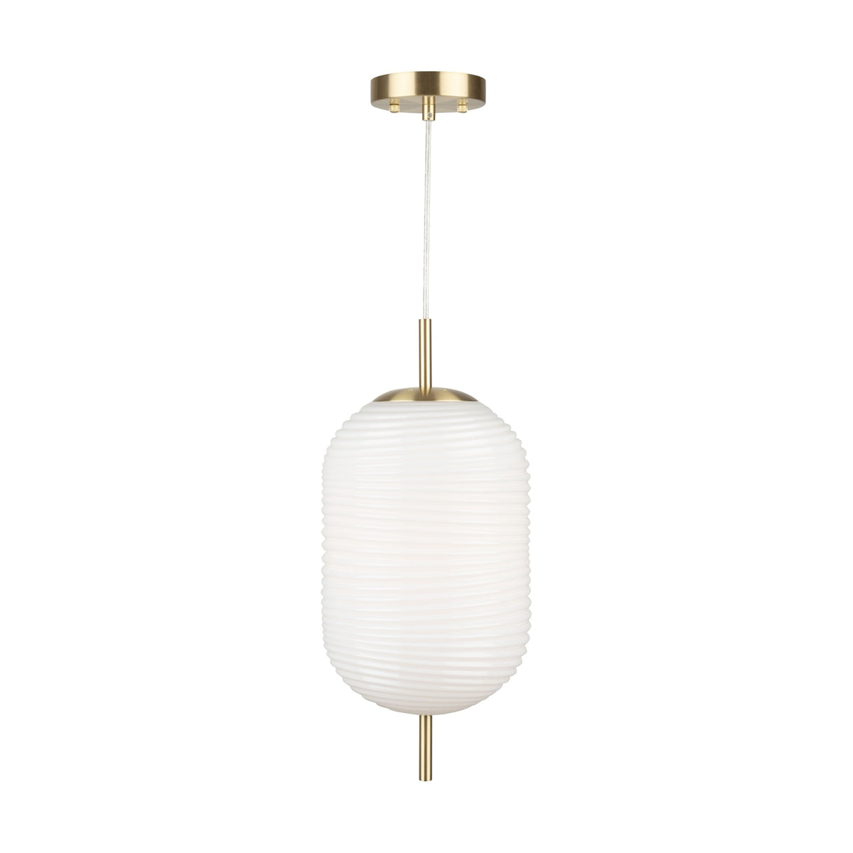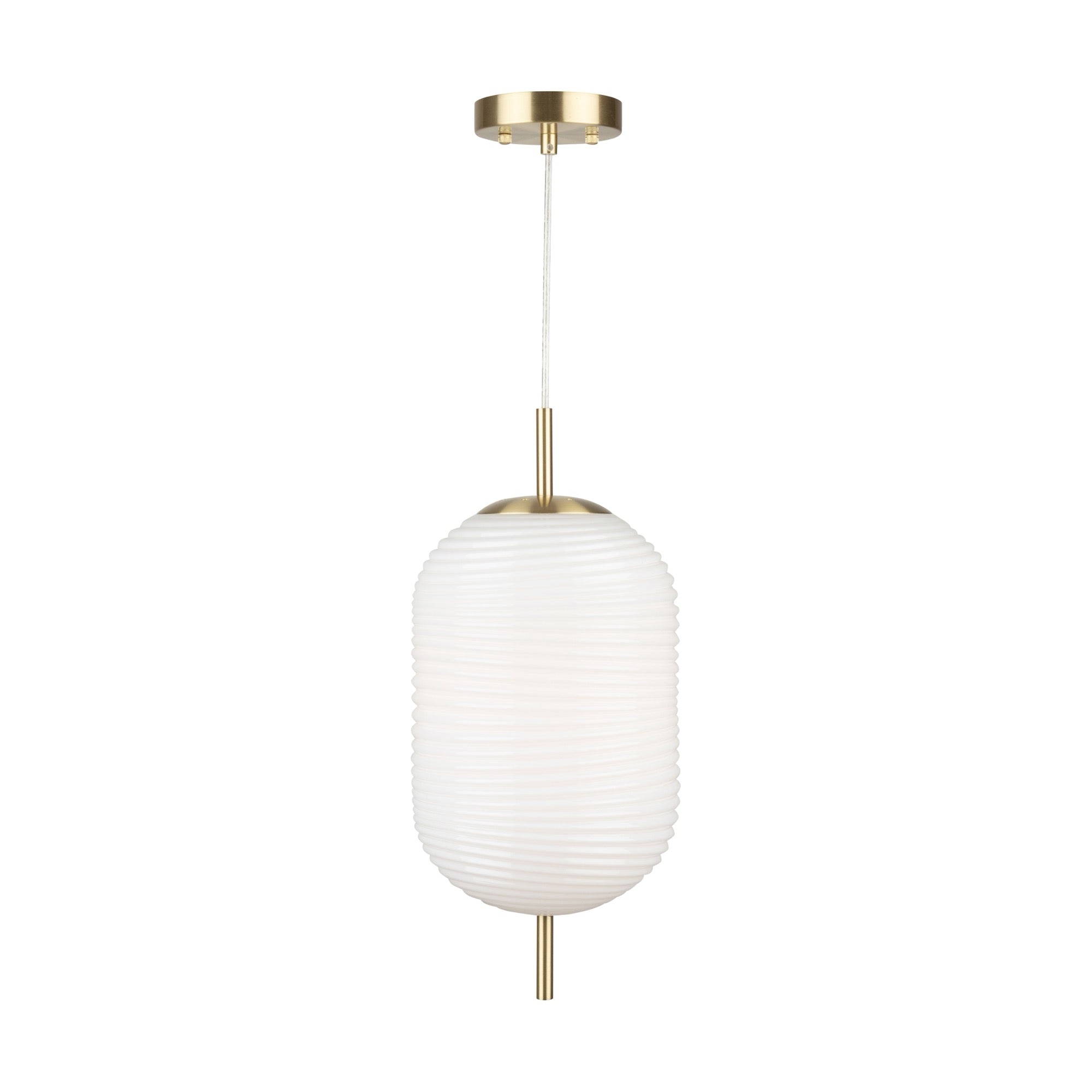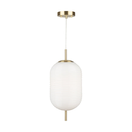 Vita Collection 1-Light Textured Shade Pendant White and Brass