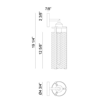 - Size Ø5 1/8" x 19 1/4"H x 6 3/4"E