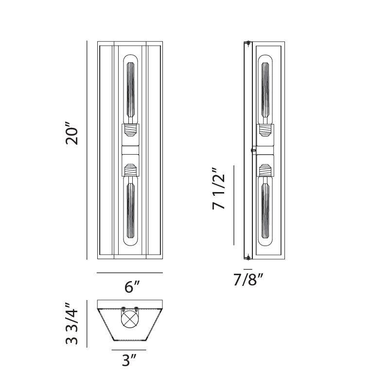 - Size 6"W x 20"H x 3 3/4"E
