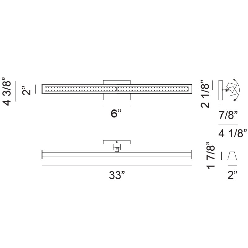 - Size 33"W x 4 3/8"H x 4 1/8"E