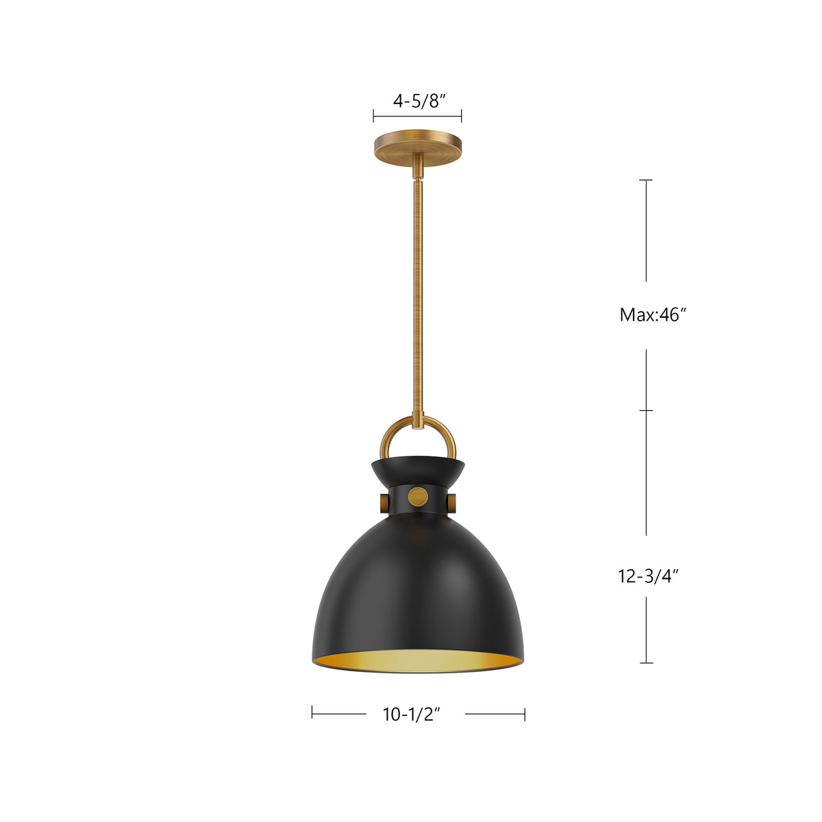 Waldo 11-in Aged Gold/Matte Black 1 Light Pendant