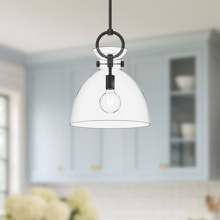 Waldo 14-in Matte Black/Clear Glass 1 Light Pendant