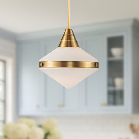 Willard 14-in Vintage Brass/Opal Matte Glass 1 Light Pendant