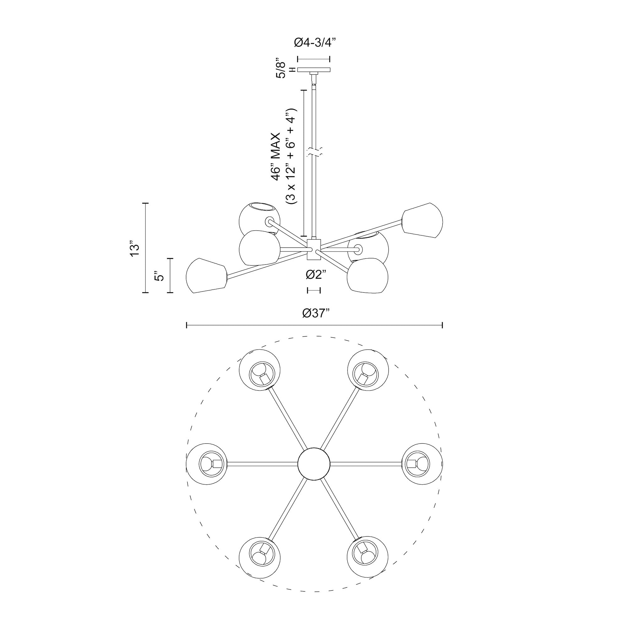 Willow 37-in Matte Black/Opal Matte Glass 6 Lights Chandeliers