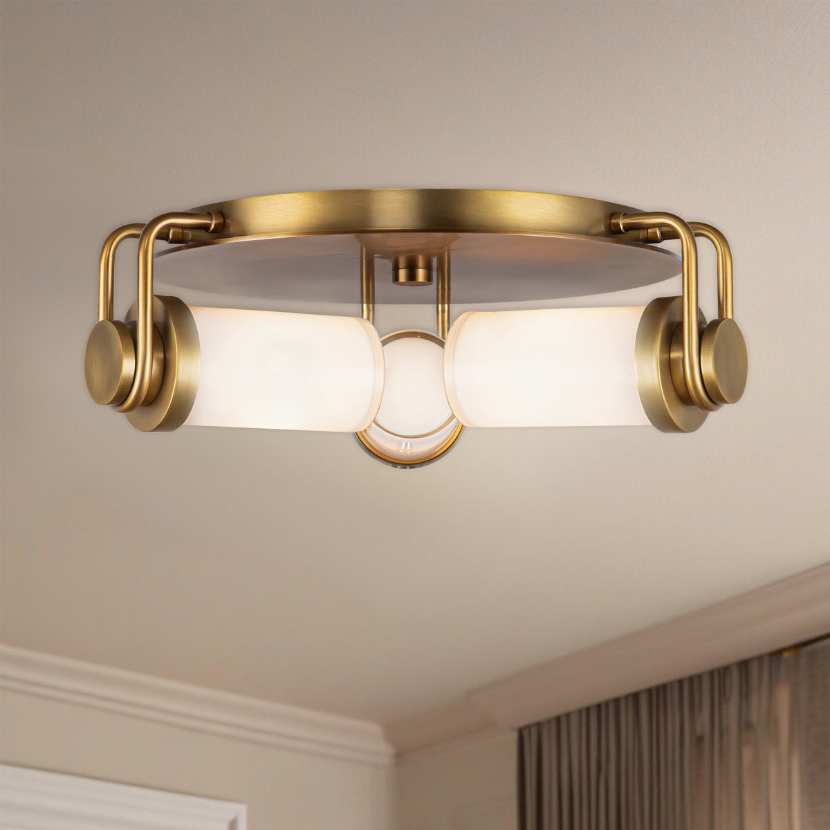 Wynwood 17-in Vintage Brass/Glossy Opal 3 Lights Flush Mount